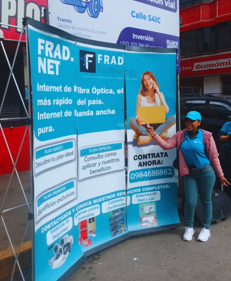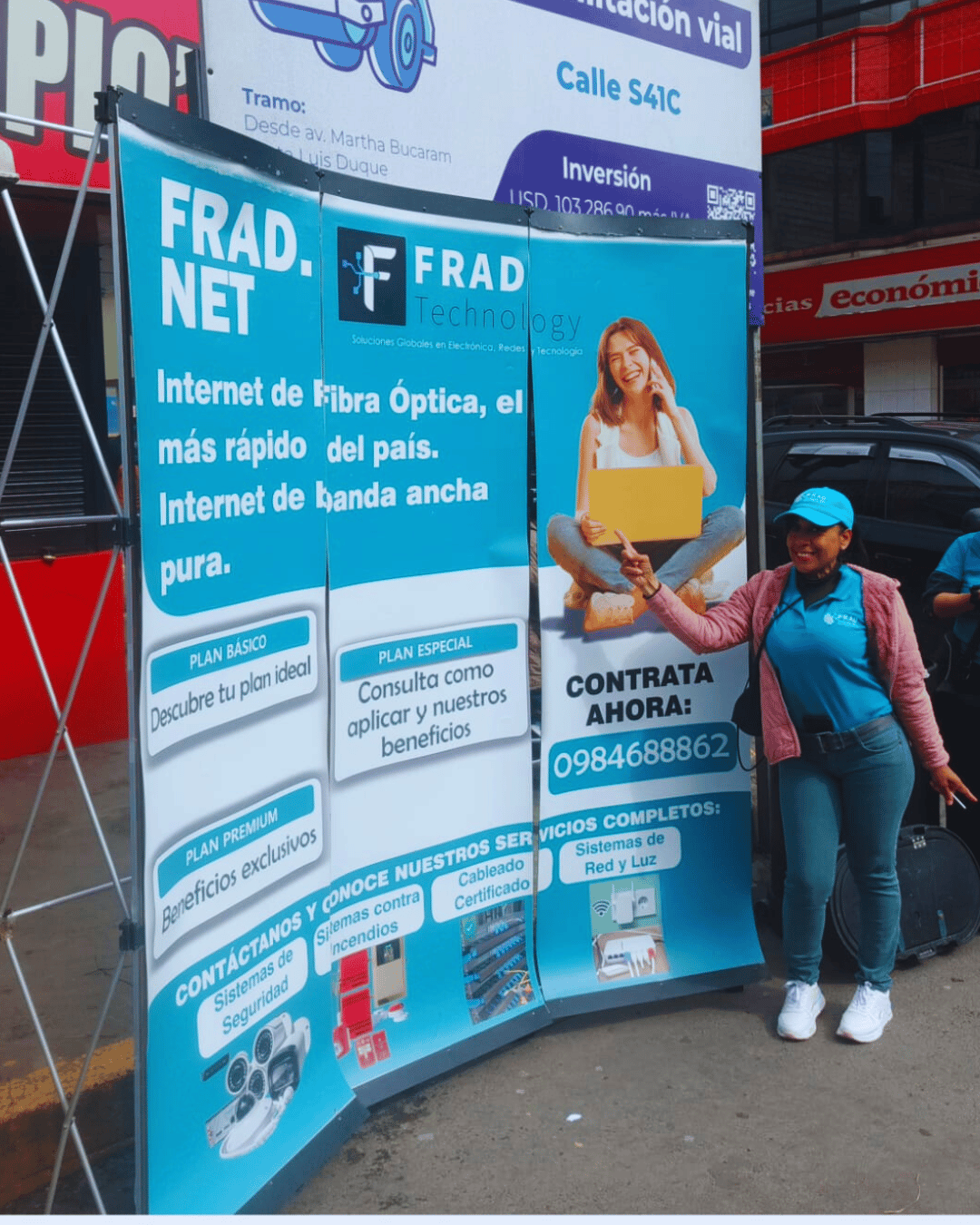 Backing Publicitario: Diseño de display enrollable de lona vinílica (PVC) para activación en exteriores.