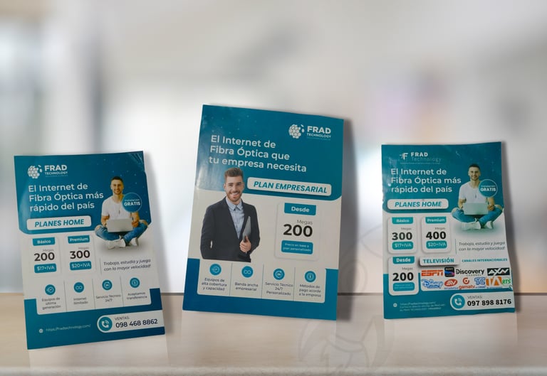 Flyer A5: Material entregado a la fuerza de venta para la promoción de planes de internet.